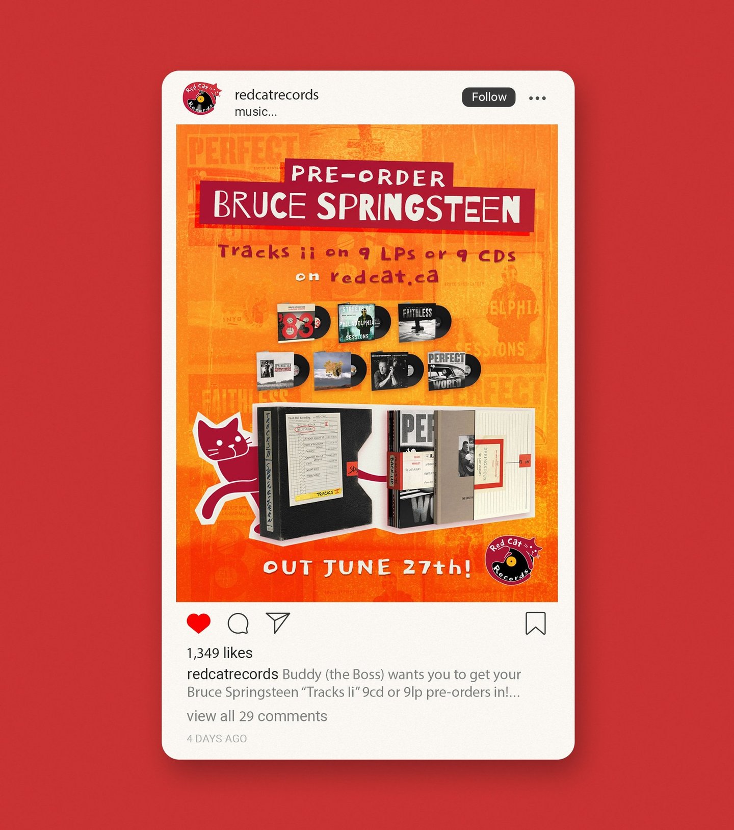 The store’s name pays tribute to Buddy the Cat, the resident feline who became a local legend until his passing in 2006, inspiring Ry Cooder’s concept album "My Name Is Buddy". Known for its welcoming atmosphere, knowledgeable staff, and community feel, Red Cat has become both a destination for collectors and a gathering place for music lovers in Vancouver.